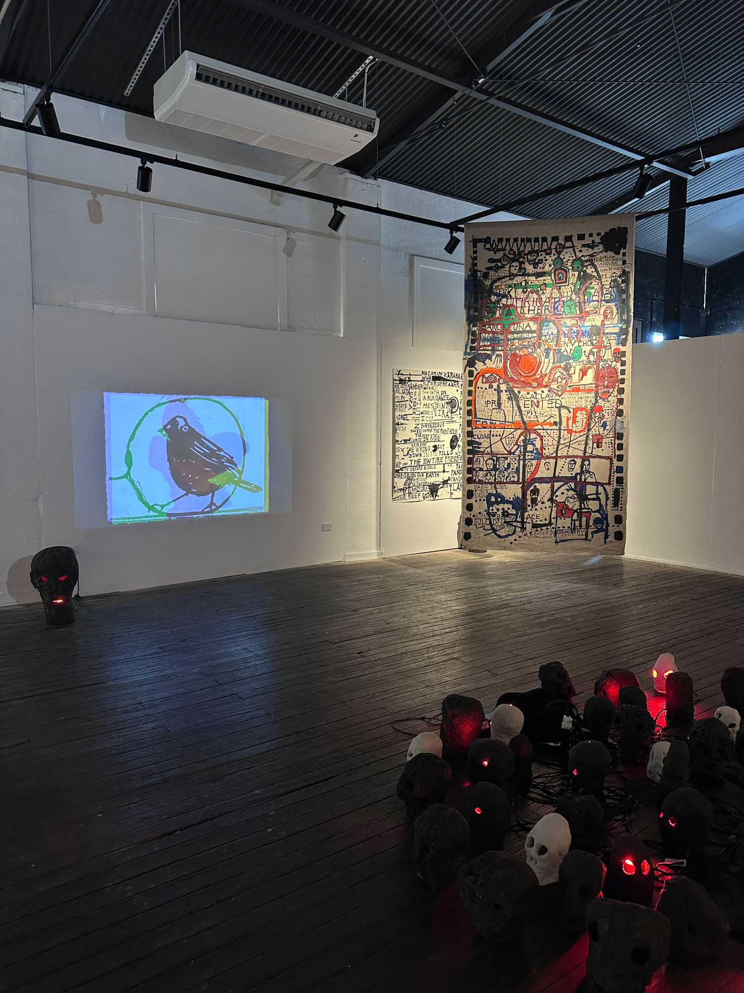 Global Report invites viewers to wander through this interplay of thoughts and artefacts, grappling with the fluid boundary between the public and the private, the ephemeral and the eternal. Ceramic heads will be lit from inside with LED’s evoking a reference to the dead we see each day from the horrors perpetrated in countless countries of humanities disregard for one another.